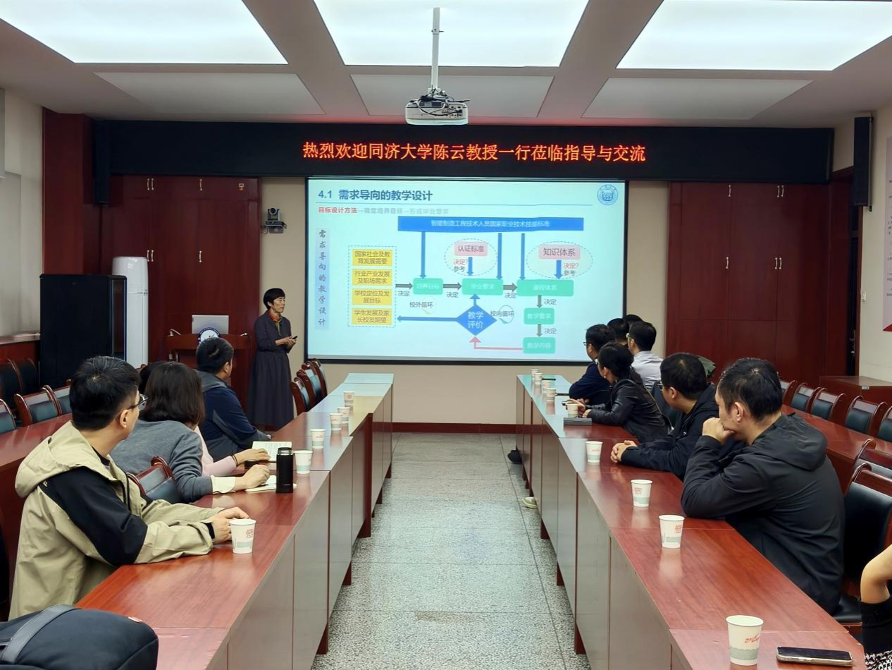 曹现刚院长对陈云教授一行的到来表示热烈欢迎,并介绍了我院智能制造专业的建设进展及当前正在推进的工程教育认证准备工作。他表示,希望以此次交流为契机,借鉴同济大学在智能制造人才培养方面的成功经验,进一步优化我院专业结构,强化校企协同,提升学生的工程实践与创新能力。