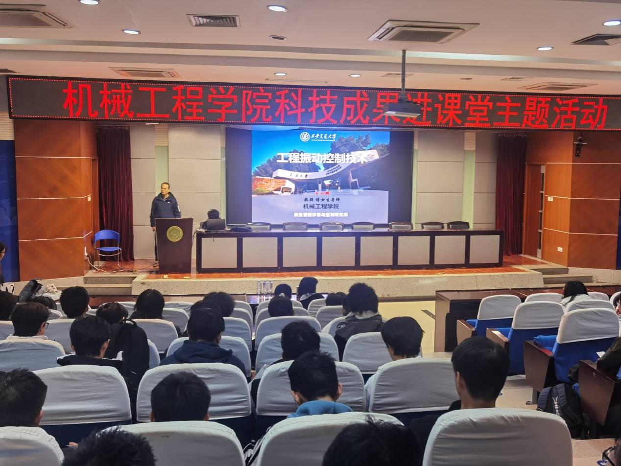 为积极对接国家“十五五”规划中“智能设计与制造”战略导向,深入贯彻落实《m88.com科研成果反哺教学工作实施管理办法(试行)》《m88.com本科生产教融合、科教融汇育人实施办法(试行)》等文件精神,m88.com依托陕西省煤矿智能化现代产业学院等平台,将“科技成果进课堂”从构想转化为生动实践,11月26日晚,m88.com在图书馆二楼报告厅成功举办“科技成果进课堂”主题活动报告会——“工程振动控制技术”“掘进工作面智能通风降尘技术及装备研究”。本场讲座由机械设计系牵头组织,学院23级、24级、25级机械设计制造及其自动化卓越、本硕、领军班200余名学生参加学习。机设系主任陈艳主持讲座。